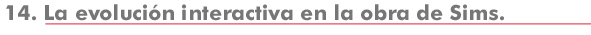 Las propuestas de Sims se basan en sistemas procesales entre la pantalla y la interactividad espacial. El primero compromete la imagen de la televisión, el cine y el ordenador, así como también los sistemas hipertextuales que trabajan con ventanas desplegables en un espacio que es de experimentación intelectual, mas que física. Este es el caso de sus trabajos animados. El segundo desarrolla aspectos kinestésicos de la personificación y está relacionado con sus obras interactivas. Aquí, los movimientos activos o pasivos del cuerpo del espectador interactúan con los datos procesales del ordenador.